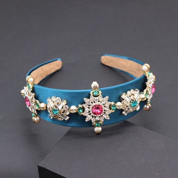 Tiara cravejada com pedras multicoloridas, coladas manualmente